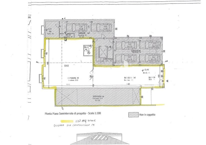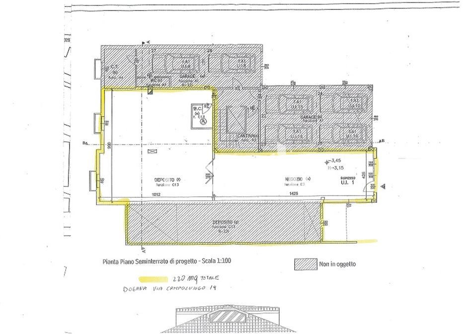 Negozio di 60 mq + deposito f di 100 mq +deposito g di 60 mq = 220 mq circa