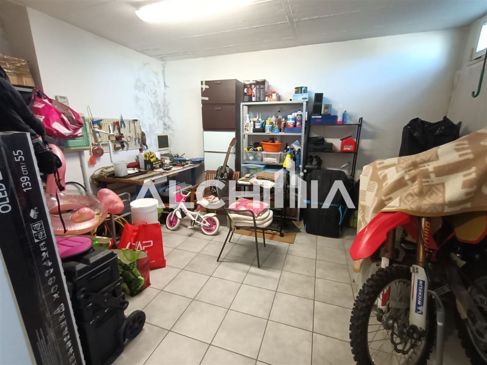 Sullo stesso piano il garage di 60 mq. circa con un fondo per gli attrezzi.