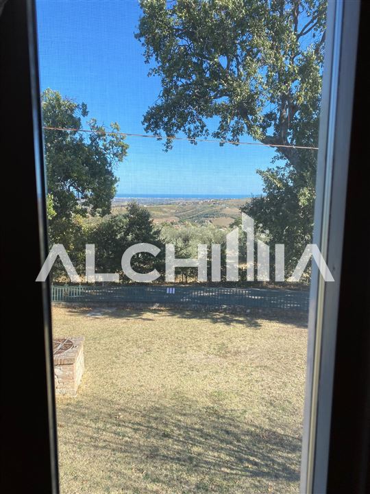 Bellissima villa rustica in pietra di San Marino con bellissimo giardino recintato di circa mq. 1100 edificabile con indice al 33%. La villa è disposta su due livelli, ed è così suddivisa: Il piano terra di mq. 195 circa dove si trova la zona giorno composta da soggiorno con cucina separata, disimpegno, un bagno, una cantina ed un ampia taverna. Al primo piano di mq. 65 circa si trova la zona notte con n° 2 ampie camere, con cabina armadio da poter adibire anche a terza camera, ed un ulteriore bagno. Sono presenti due ampi garage con ripostiglio. La villa è immersa nel verde con ottima vista mare.