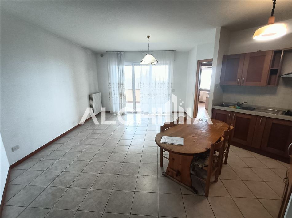 In zona Valdragone al piano secondo di più ampia palazzina residenziale, vendesi appartamento di mq. 56 composto da ingresso su cucina e soggiorno con ampio balcone porticato di mq. 16 ed arredato di sola cucina. Piccolo disimpegno con accesso al bagno con doccia ed alla camera con balcone per mq. 8 circa. Al piano seminterrato ampio garage di mq. 55.